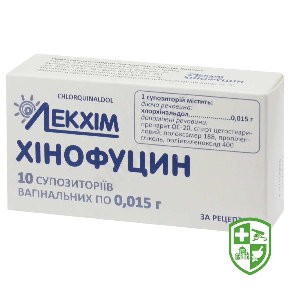 1 супозиторій містить хлорхінальдолу 0,015 г;