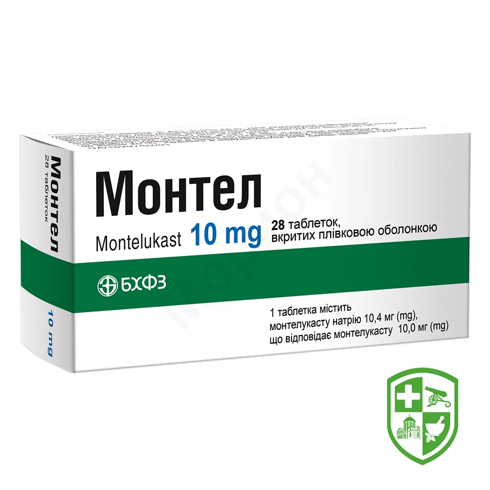 1 таблетка містить монтелукасту натрію 10,4 мг, що відповідає монтелукасту 10,0 мг;