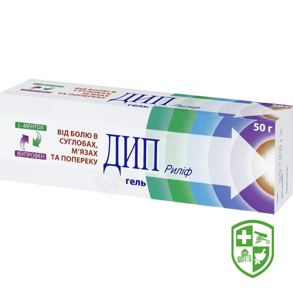 Дип Риліф — комбінований препарат для зовнішнього застосування, що містить ібупрофен з ментолом природного походження. Ібупрофен, похідна сполука фенілпропіонової кислоти, є представником групи нестероїдних протизапальних препаратів, має знеболювальну, протизапальну дію, зумовлену пригніченням простагландинсинтетази. Дія левоментолу, оптичного ізомеру ментолу, зумовлена рефлекторними реакціями, що пов’язані з подразненням чутливих нервових закінчень шкіри. Ментол стимулює ноцицептори шкіри. У результаті відбувається вивільнення пептидів, які мають судинорозширювальну дію. Препарат чинить відволікаючу, подразнювальну дію та полегшує біль.