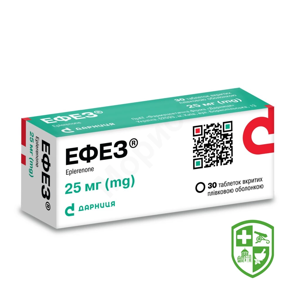 Еплеренон вивчали у ході дослідження EPHESUS. Це було подвійно сліпе плацебо-контрольоване дослідження тривалістю 3 роки, в якому брало участь 6632 суб’єкти з гострим інфарктом міокарда, дисфункцією лівого шлуночка (оцінювалося за фракцією викиду лівого шлуночка ≤ 40%) та клінічними ознаками серцевої недостатності. Через 3–14 днів після гострого інфаркту міокарда (медіана становила 7 днів) суб’єкти додатково до стандартного лікування отримували еплеренон або плацебо у початковій дозі 25 мг 1 раз на добу. У подальшому дозу поступово (впродовж 4 тижнів) підвищували до досягнення цільової дози 50 мг 1 раз на добу за умови, що рівень калію в сироватці крові був нижчим за 5 ммоль/л. Протягом дослідження суб’єкти отримували стандартне лікування, що включало ацетилсаліцилову кислоту (92%), інгібітори АПФ (90%), β-блокатори (83%), нітрати (72%), петльові діуретики (66%) або інгібітори ГМГ-КоА-редуктази (60%).
