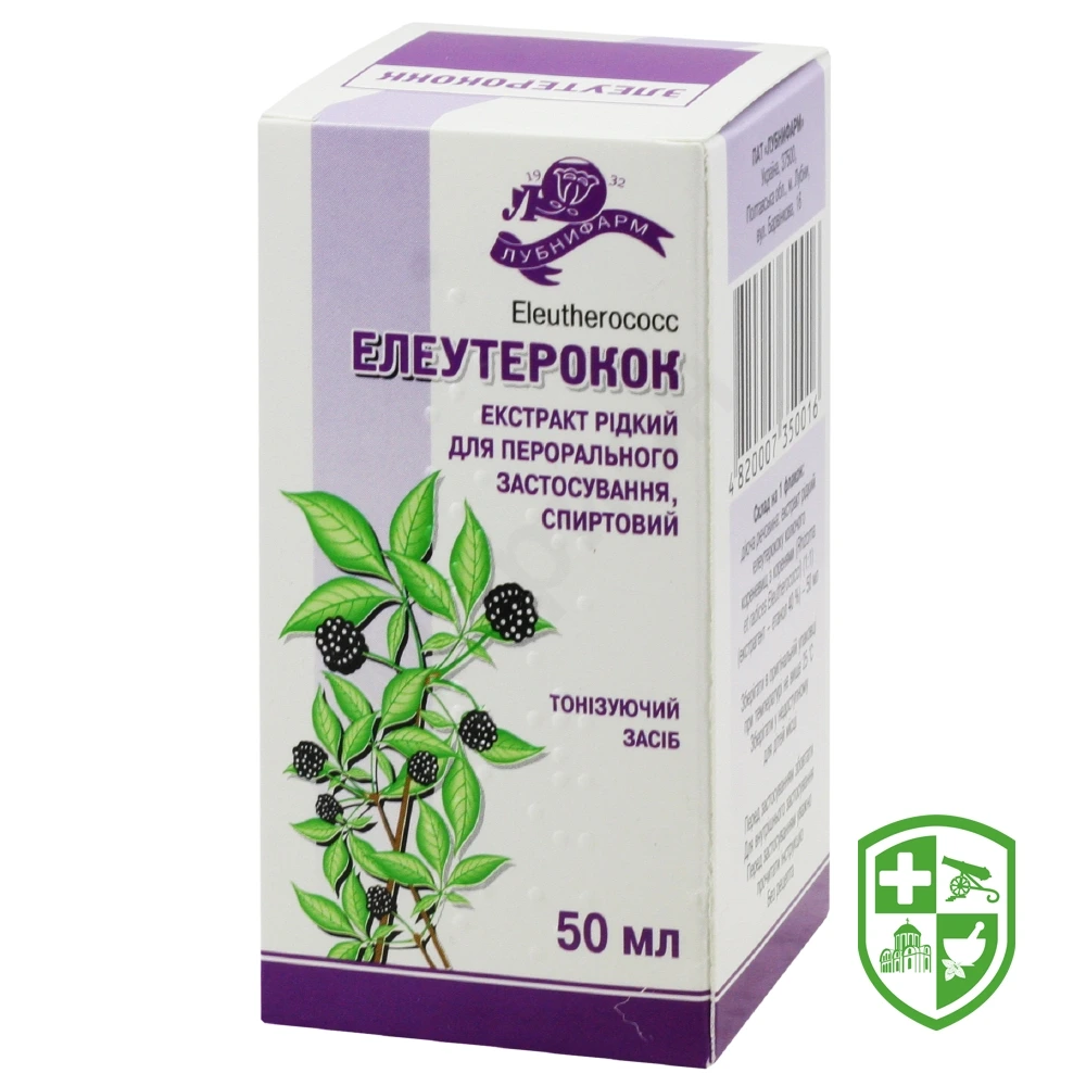 діюча речовина: екстракт рідкий елеутерококу колючого кореневищ з коренями (Rhizoma et radices Eleutherococci) (1:1) (екстрагент — етанол 40%) — 40 мл, 50 мл або 100 мл.
