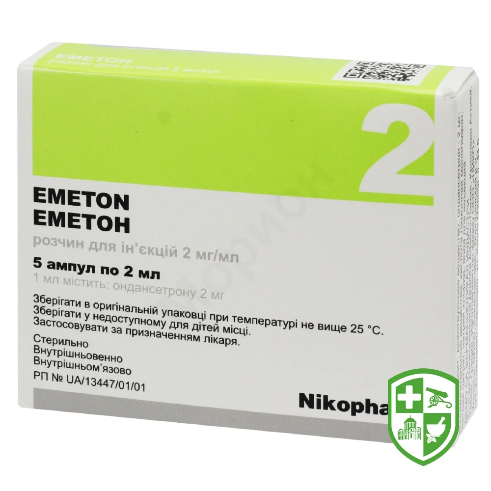 Для лікування післяопераційних нудоти і блювання рекомендована разова доза препарату Еметон становить 4 мг, яку вводять внутрішньом’язово або повільно внутрішньовенно.