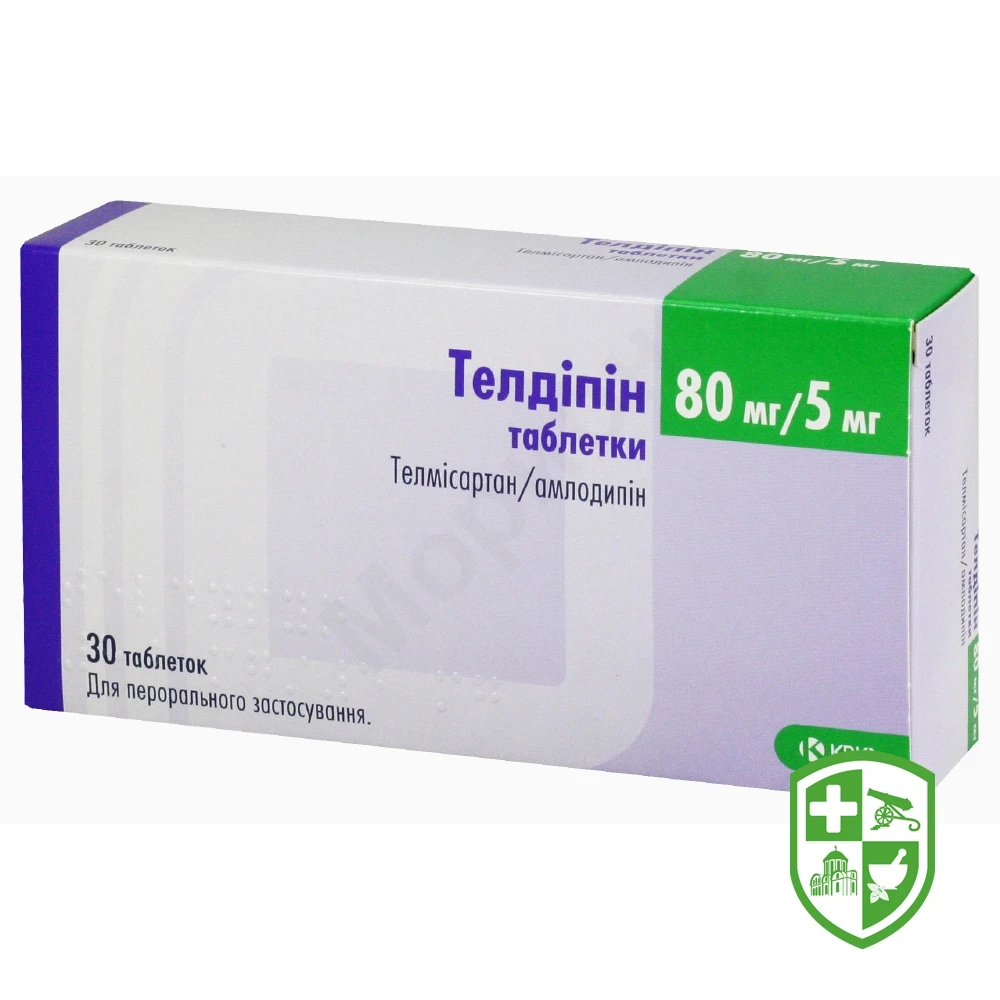 Телдіпін, таблетки по 80 мг/10 мг: овальні, злегка двоопуклі, двошарові таблетки, з одного боку коричнювато-жовтого кольору, мармурові, з іншого боку — від білого до майже білого кольору з гравіюванням K1.