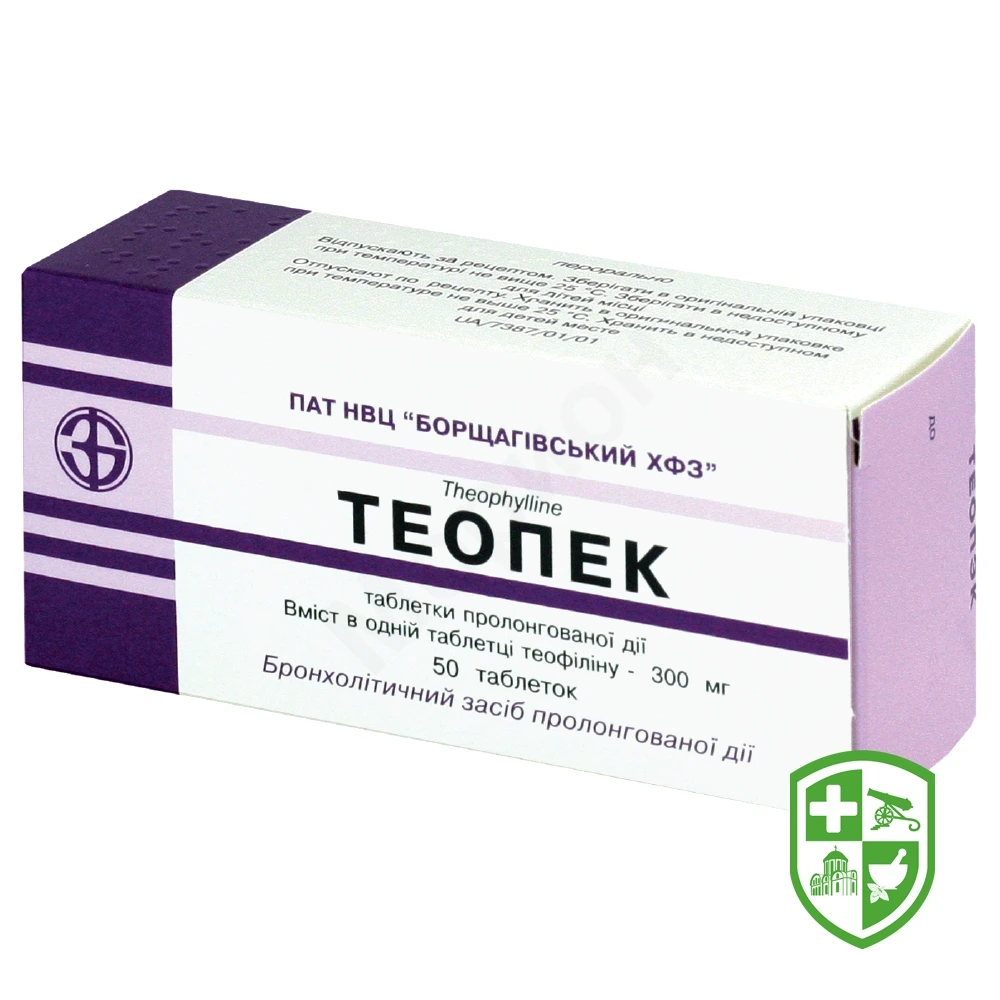 Теопек має пролонговану дію. При дворазовому застосуванні препарату терапевтична концентрація у крові підтримується впродовж доби. Терапевтична концентрація в сироватці крові становить 10–20 мкг/мл (55–110 мкмоль/л).