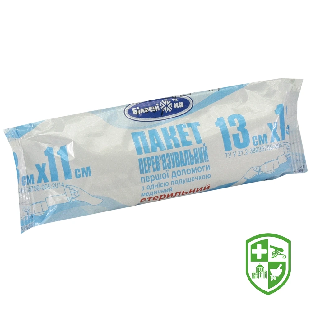 Пакет перев'язувальний першої допомоги з однією подушечкою стерильний 13 см * 11 см, тип 17