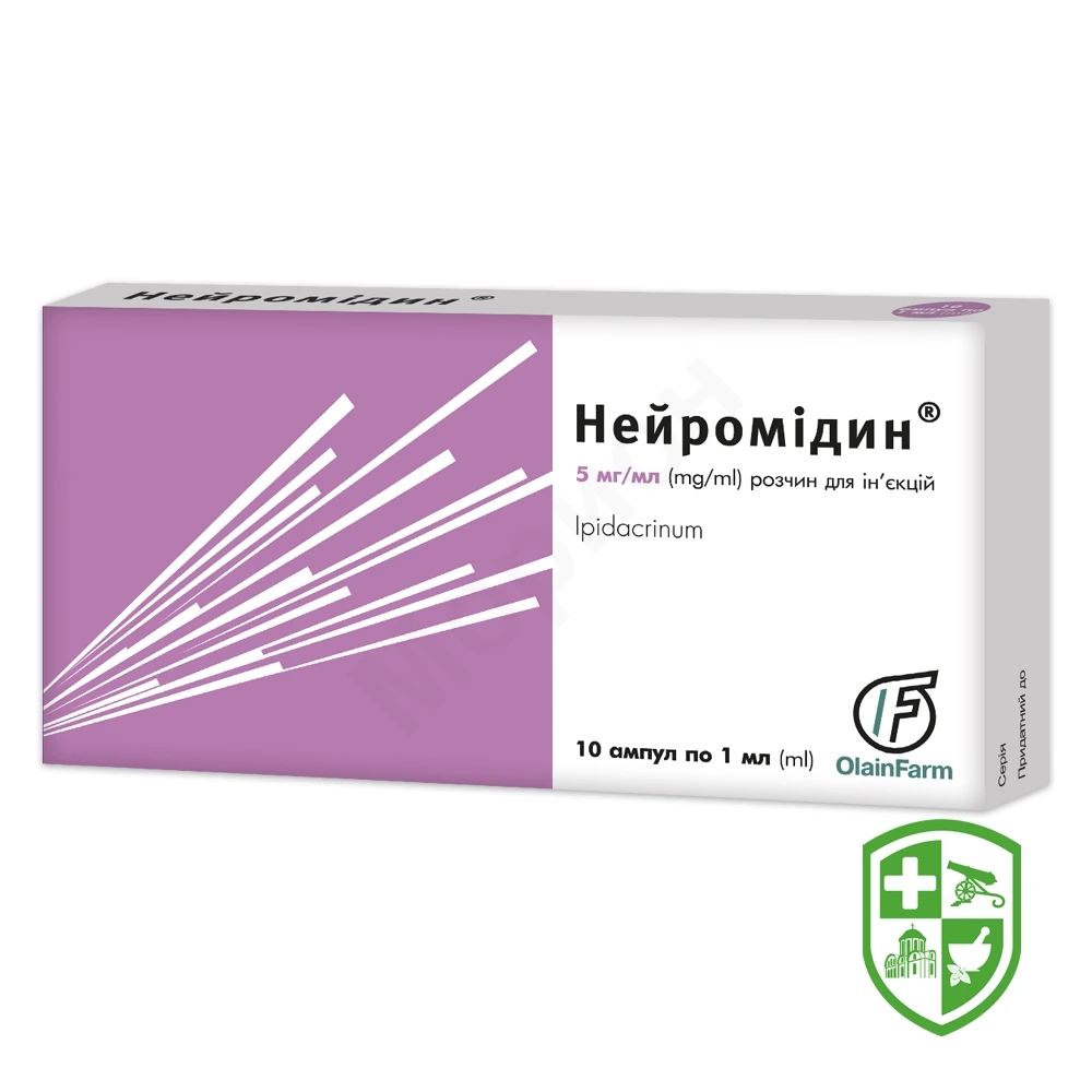 Нейромідин® 5 мг/мл розчин для ін'єкцій: 1 мл розчину для ін'єкцій (одна ампула) містить 5 мг іпідакрину гідрохлориду в перерахуванні на безводну речовину;